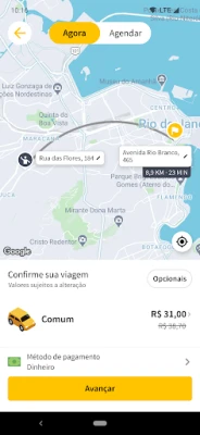 A cobrança funciona como a chamada de um taxi normal, ou seja, só inicia a contagem quando você entra no carro.