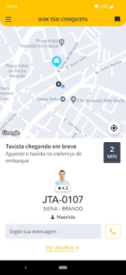 Nosso aplicativo permite que você chame um de nossos táxis e acompanhe o deslocamento do carro no mapa, sendo avisado quando ele estiver na sua porta.