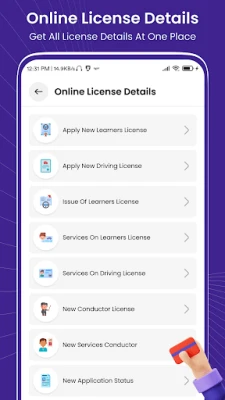 The app aggregates links to websites for popular government services of Driving Licence Online like Apply online for Learning License, Verify Driving License by entering number, Learning License test appointment online etc. and displays this information inside a mobile browser.