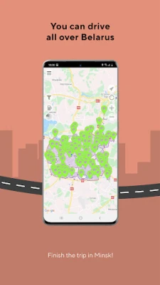 Travel is allowed all over Belarus. You can rent a car and leave it in the permitted areas marked on the map in lilac. The current completion zones can be viewed on our website or in the app.