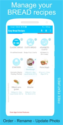 ✓ Manage all your recipes: name and add photos of your breads, copy/paste recipes, import/export recipes in JSON format, and share them via WhatsApp, Signal, email, text, and other social networks.