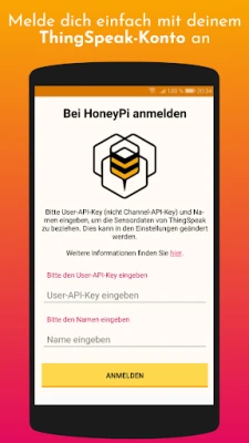 The counterpart to your HoneyPi measuring system is the HoneyPi app, which clearly visualizes your measured data. The measurement data is obtained from the IoT platform ThingSpeak, which is why a user account must be created at ThingSpeak. If you don't have a ThingSpeak account yet, you can register for free here: https://thingspeak.com/login.