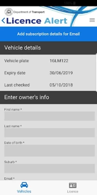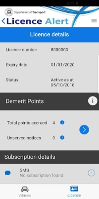 With the Licence Alert app you can easily: • Check your driver’s and vehicle licence (rego) expiry dates as well as your demerit points. • Create, view and update SMS and email notifications. • Add reminder notifications to your device. • Link directly to your account payment page once your licence renewal is due.
