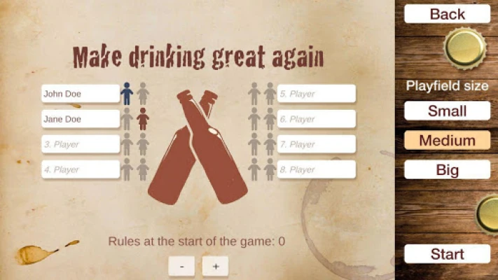 Time to relax! How? Make drinking great again (#MDGA) is the mother of all drinking game apps – zero ads, no hidden costs and made by Germans, the nation that really does make drinking great again. The ideal game for predrinks, pregaming, preheating, getting your booze on, getting hammered, enjoying a cold one (or twenty) with the boys and girls. Two players or more – MDGA makes it possible for you. The game is incredibly easy: Enter your name, gender, playing field size (make it big to make us proud and you drunk) and start turning over cards – you might not remember all of it, but you certainly won’t regret it!