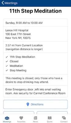 • If you choose not to share your location, you can still find meetings by entering a location in the search bar, in which case you will receive a list of meetings near the location you entered.