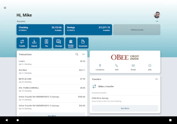 O Bee Mobile makes life easier by giving you the tools you need to manage your finances 24/7. It’s the fast, secure way to access your accounts at O Bee Credit Union. Cheers!