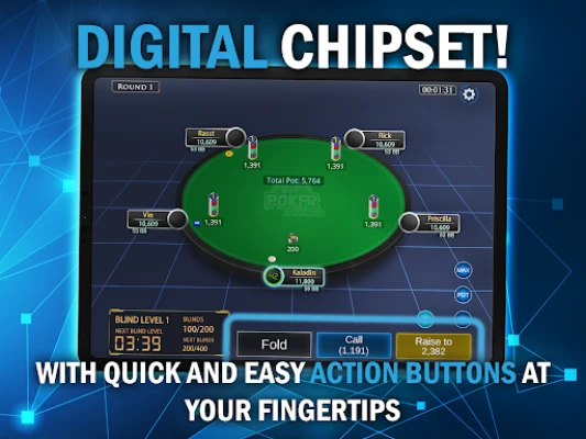 Never worry about keeping track of bets and pots during a Texas Hold'em poker tournament again with Poker Chip Counter. This app provides a digital chipset with all denominations, allowing players to easily play face-to-face even when physical chips are not available.