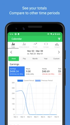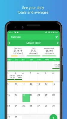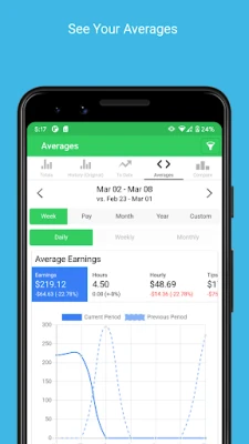 Enter your earnings at the end of your shift and easily see your totals. You'll be able to clearly see which days pay the best with our powerful filtering and comparison logic.