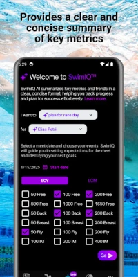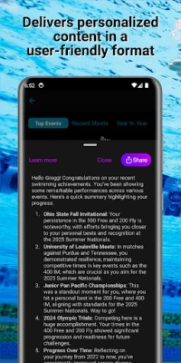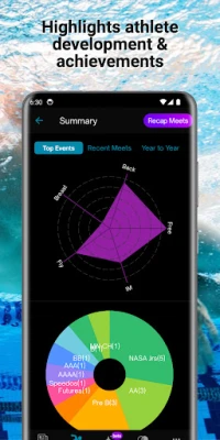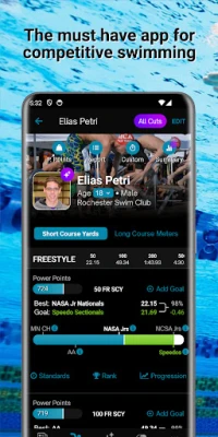 Maximize your competitive swimming experience with swimmer progressions, goal tracking, head-to-head comparisons, and the latest news and trends, all at your fingertips!