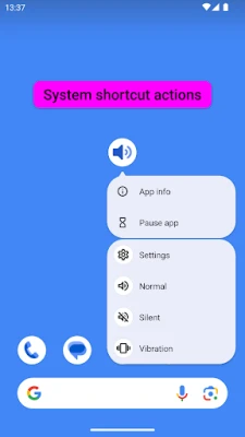 Shortcut actions available (for Android 7.1 and above) - long press the app icon to set the mode: - Normal - Silent - Vibration